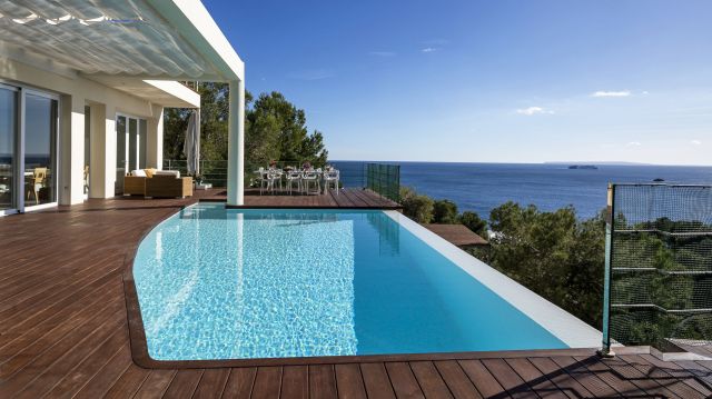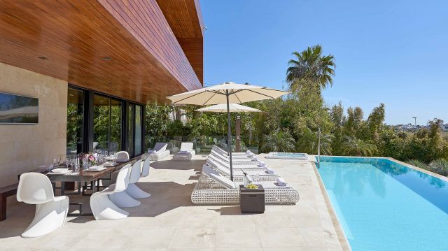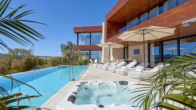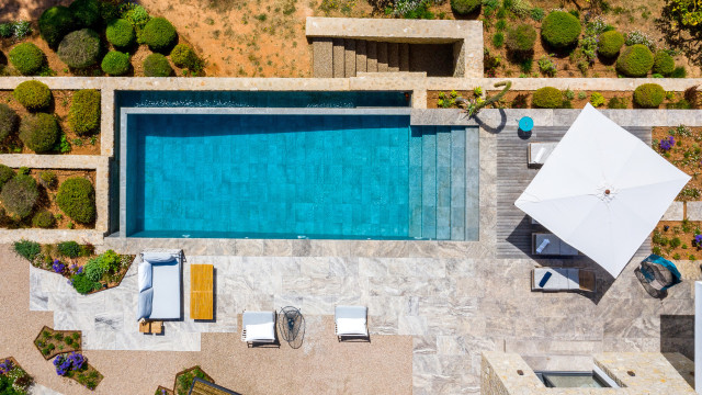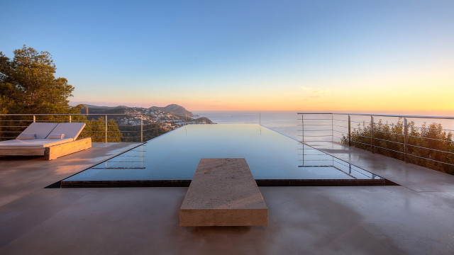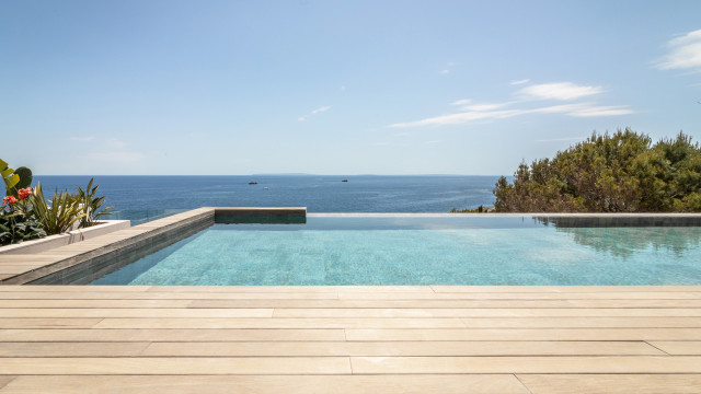 Infinity pools go that extra steps when it comes to stylishness and visual effects. The pools flowing over the edge, seamlessly into the background has a certain appeal. Especially if that background is the Mediterranean sea. If infinity pools rank high on your wish list, this collection is meant for your taste!